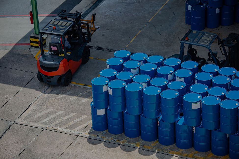 Top view oil barrels forklift truck move for on the transportation worker help arrange_edi